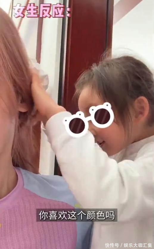 6. 苗苗还特别记录下两个孩子第一次看到她粉色新发型时的真实反应。姐姐安娜表现出极大的惊喜,瞪大眼睛反复确认,忍不住伸手抚摸妈妈的发丝,左看右看仿佛发现了新大陆,母女俩像一对小姐妹般沉浸在“变美”的话题中,互动温馨有趣。