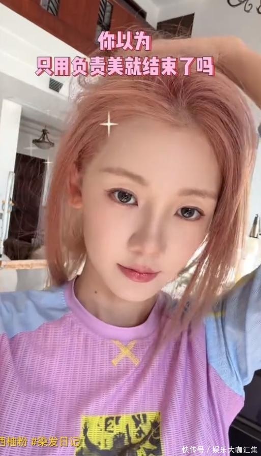 2. 视频曝光后不久,苗苗便主动晒出了多张高清自拍照,照片中的她妆容精致、神采飞扬,一头新染的西柚粉色长发尤为抢眼,搭配亮眼服饰,整体造型充满青春活力,宛如女团成员般闪耀动人,完全看不出已是三个孩子的母亲。